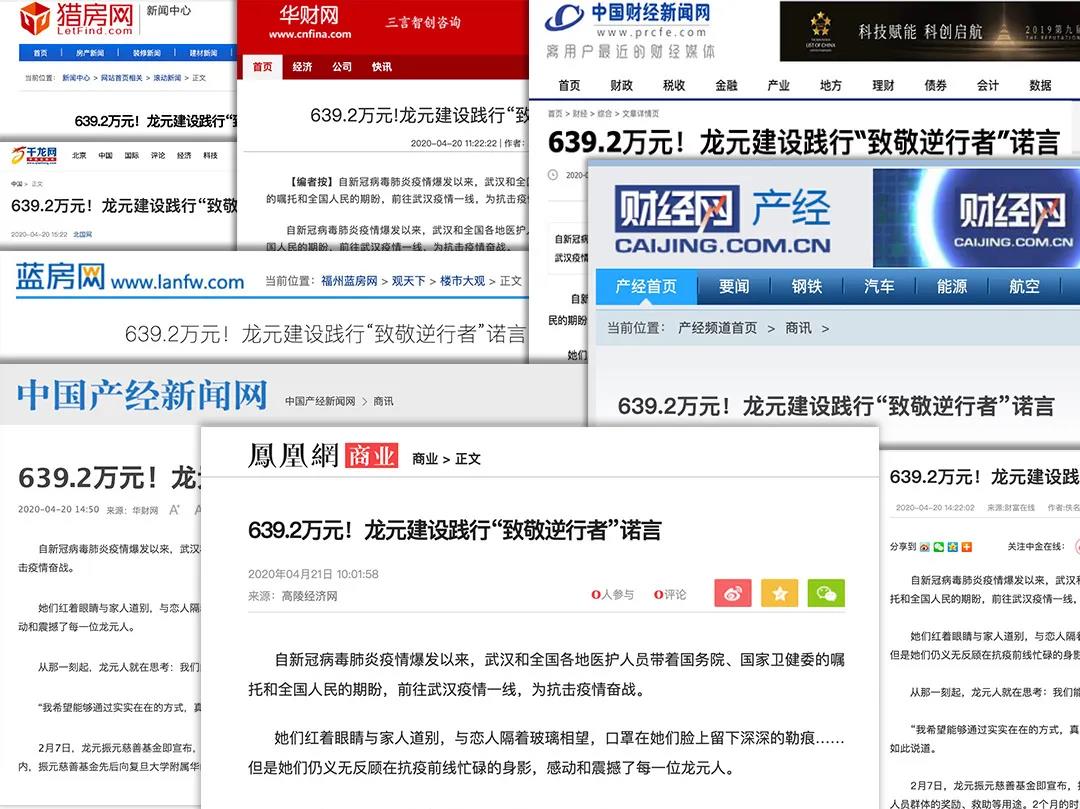 媒體關(guān)注 | 639.2萬(wàn)!龍?jiān)ㄔO(shè)踐行“致敬逆行者”諾言